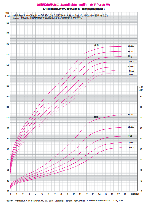 お子さんの身長の伸びが基準範囲(-2SDから+2SD)を大きく外れていなければ、通常はあまり問題ありません。また、身長が伸びすぎる場合にも思春期早発症などの病気がかくれていることがありますので、注意が必要です。