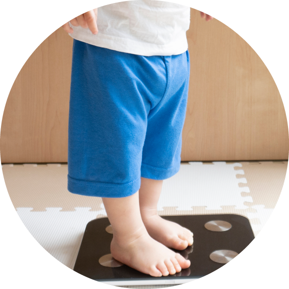 肥満は「メタボリックシンドローム」と呼ばれる2型糖尿病、脂質異常症、高血圧などの原因となり、これらは動脈硬化を促進し将来的に心筋梗塞や脳卒中を起こすリスクを高めます。また脂肪肝や睡眠時無呼吸をおこすこともあります。肥満がある場合はこのような合併症がないかの検査が必要となります。子どもの肥満は大人の肥満のもとです。年長児の肥満ほど大人の肥満に移行しやすく、特に思春期になると、身長が伸びて体格が形成され、肥満を引き起こす生活習慣が定着してしまうためやせにくくなります。